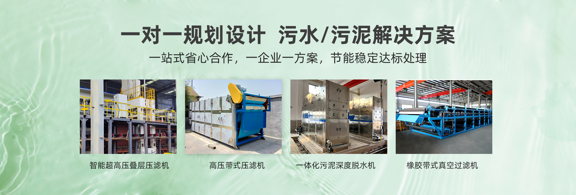 主營產(chǎn)品:超高壓疊層壓濾機(jī)、高壓帶式壓濾機(jī)、橡膠帶式真空過濾機(jī) 、帶式濃縮脫水一體機(jī)、帶式壓濾機(jī)、一體式污泥深度脫水機(jī)、帶式果汁壓榨機(jī)、疊螺式污泥脫水機(jī)、轉(zhuǎn)鼓式濃縮脫水一體機(jī)、刮吸泥機(jī)、一體化污水處理設(shè)備、氣浮機(jī)、加藥裝置、輸送機(jī)、污泥料倉等設(shè)備。產(chǎn)品廣泛應(yīng)用于市政污水、工業(yè)廢水、食品與飲料、畜牧養(yǎng)殖、礦山、化工、造紙、制藥等領(lǐng)域。